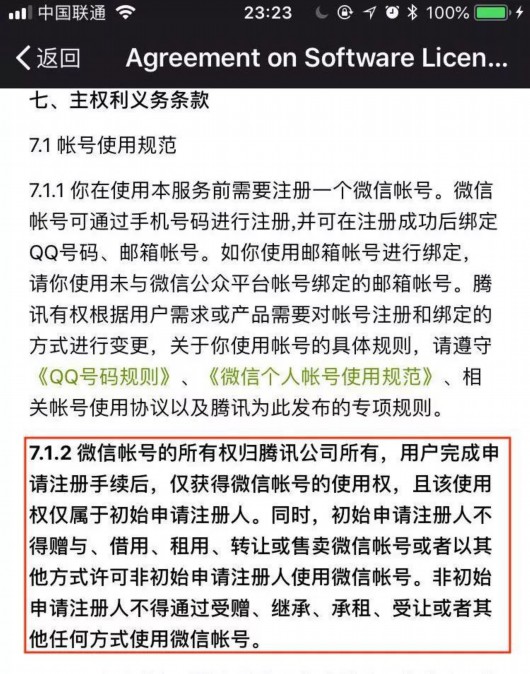对于微信,《腾讯微信软件许可及服务协议》中载明,微信账号的所有权归腾讯公司所有。非初始申请注册人不得通过受赠、继承、承租、受让或者其他任何方式使用微信账号。